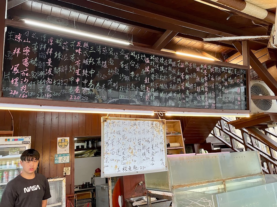 位在港邊的木造建築餐廳。店前面路邊就有一排停車空間,但假日難停車。店家的右前方百公尺處有大型停車場,很多車位。非用餐尖峰時段可以在這邊吹海風邊慢慢用餐。唯一可挑剔的是調味佐料的味道太強,已蓋過食材海鮮本身的鮮甜,適合較愛重口味的人。
