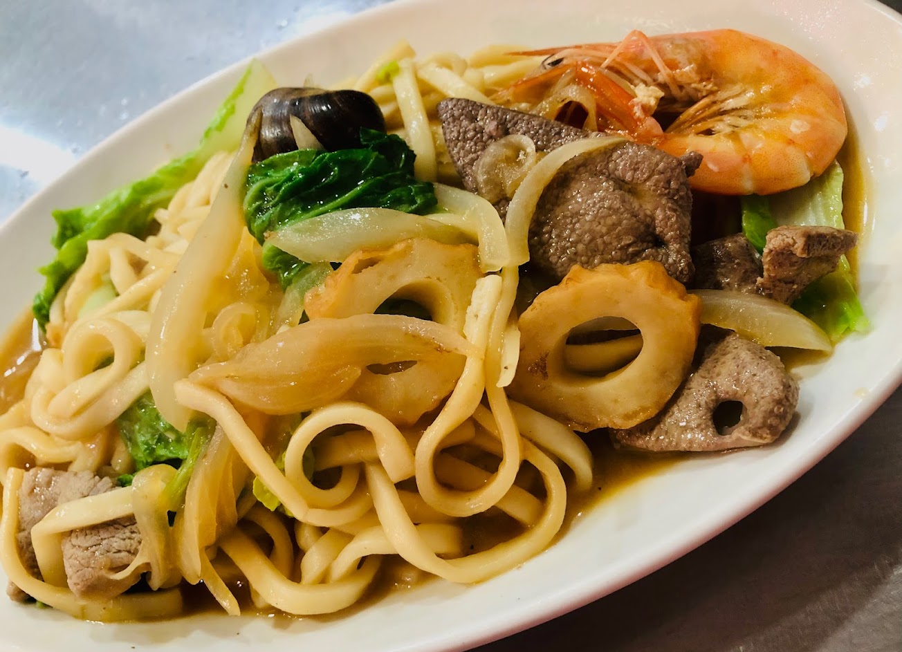 海鮮食材(小卷/蛤蜊/蝦子)都新鮮,最主要的是炒類的餐點都有「鍋氣」!超級香!湯汁不油膩也不死鹹。強烈建議炒麵加蛋,整個香氣和飽足感提升檔次。