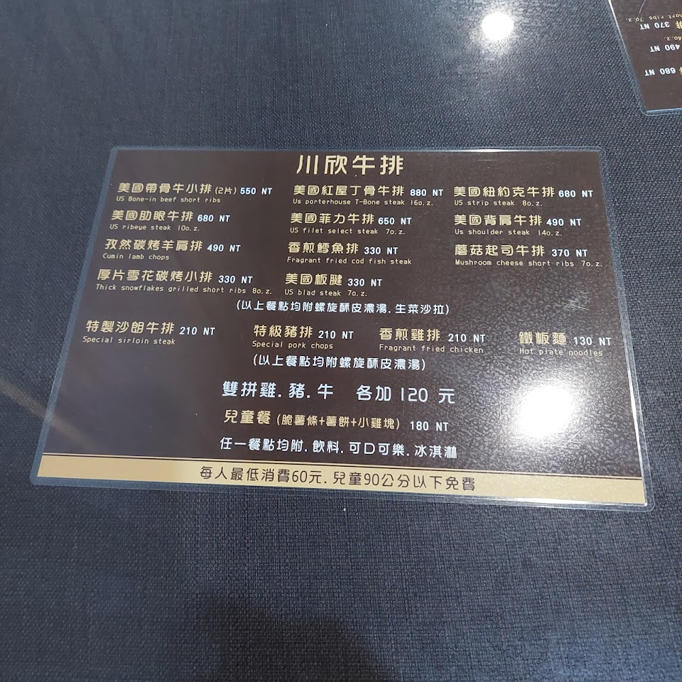 2024最新在地推薦餐廳的菜單_川欣牛排的菜單、圖片