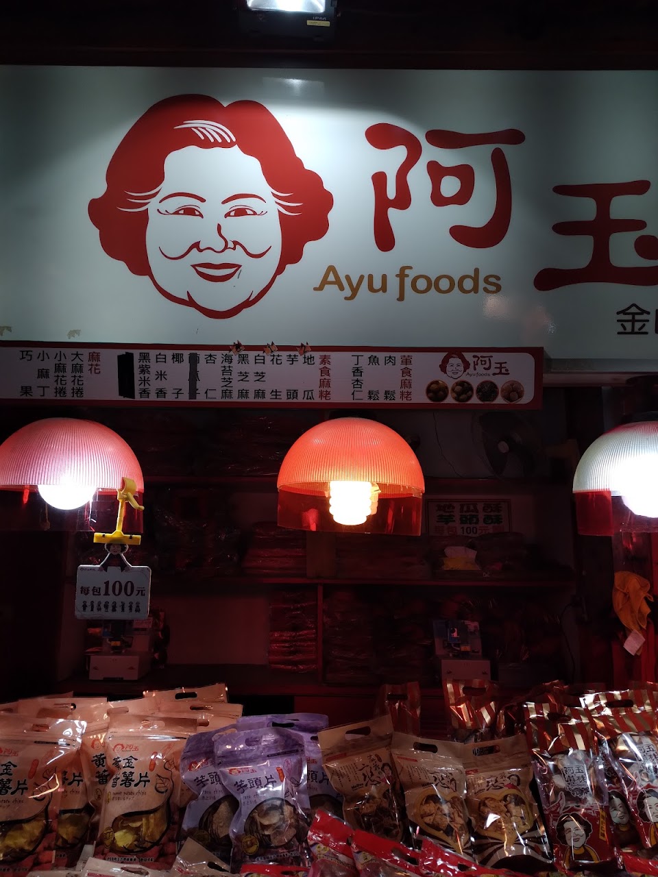 週日晚上七點來逛金山老街 大部分的攤都收了 網路上看到推薦所以來買 一包都100 價格算是實惠 準備過年拿來當年貨吃 看起來非常好吃