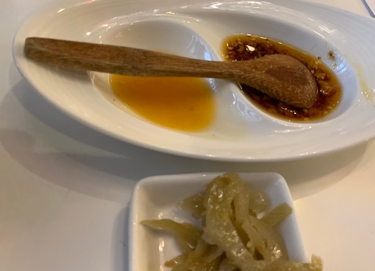 點餐後空等35分鐘看到別桌比較晚來主食都快吃完,提醒後得到小菜一份和許多抱歉,sop有問題但態度良好。褲帶麵和特製辣椒非常驚艷細緻,天下三絕的牛肉嫩,好入口,不過要賣到500元火候還有進步空間。