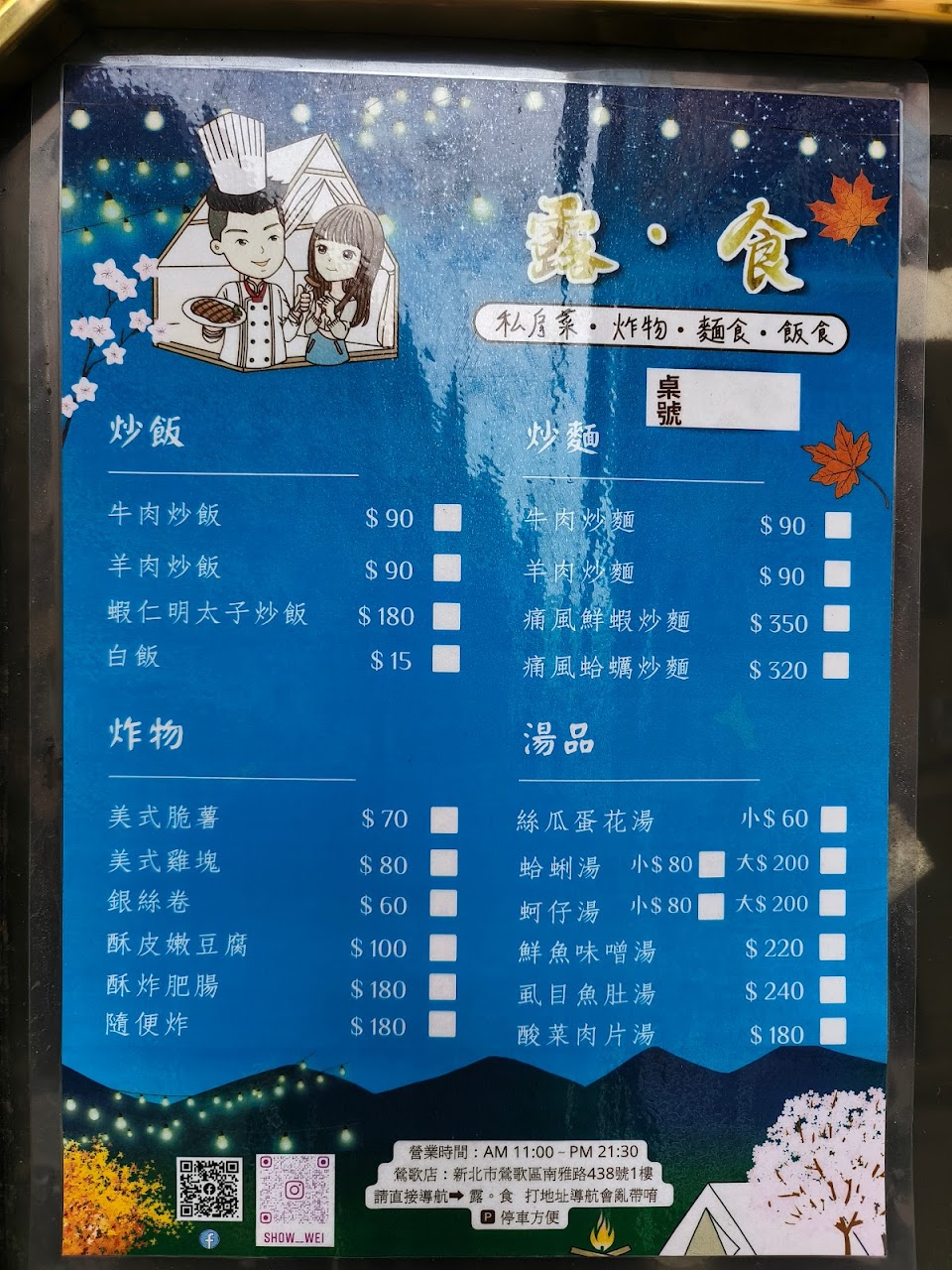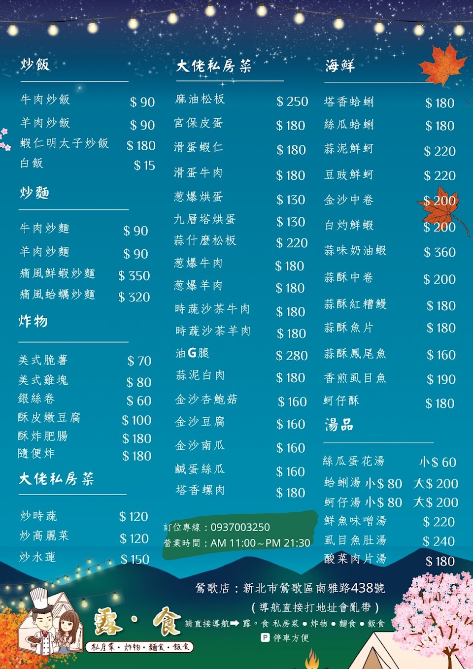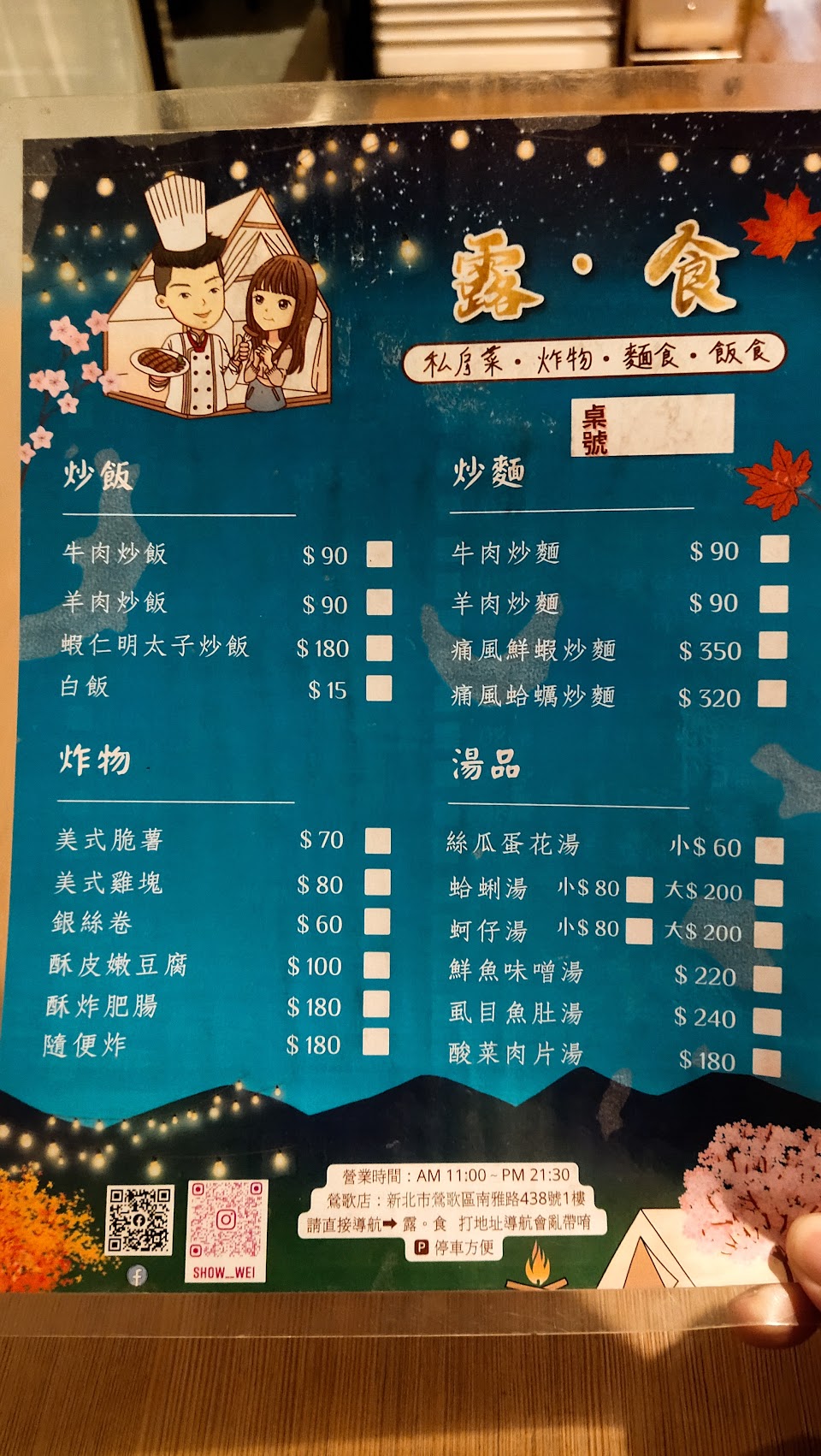 2024最新在地推薦餐廳的菜單_露。食 熱炒私房菜 • 炸物 • 飯食 • 麵食 鶯歌美食/新北美食/在地推薦餐廳/網美/美食的菜單、圖片