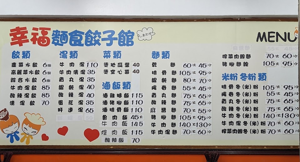 2024最新在地推薦餐廳的菜單_幸福麵食餃子館的菜單、圖片
