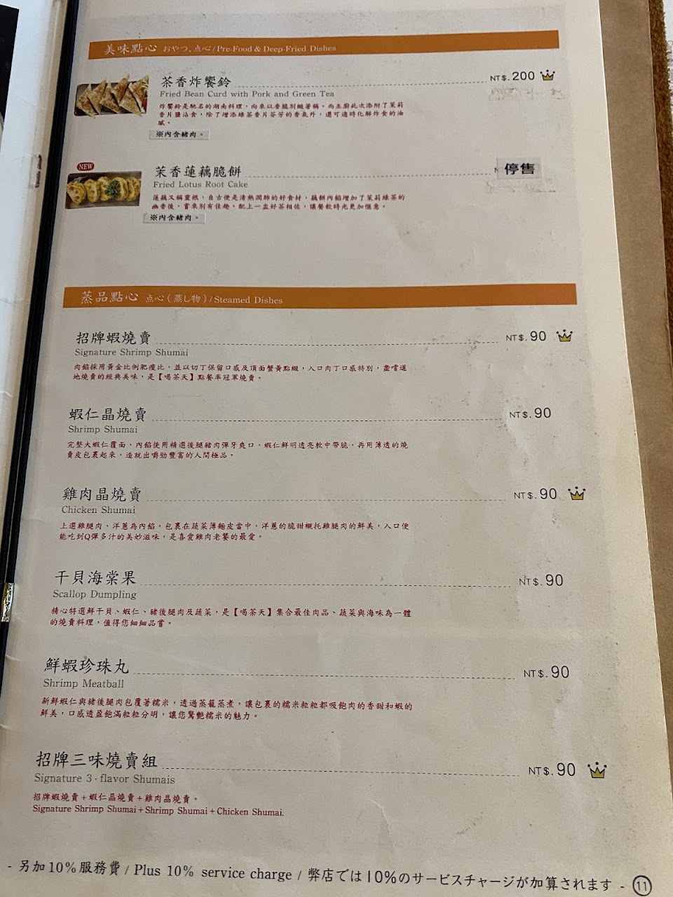 4.菜單綜合點心有3個不一樣的,送來有重複2個一樣,是沒有了?也該跟客人說明一下吧?