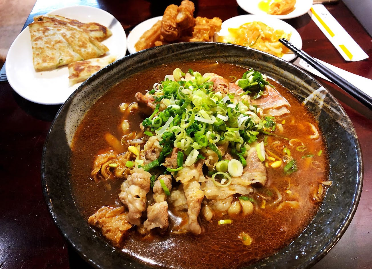麻辣燙拉麵好吃,口味較重,麻而不辣 蔥油餅也不錯,要記得加醬,更好吃 店裡有免費綠豆湯
