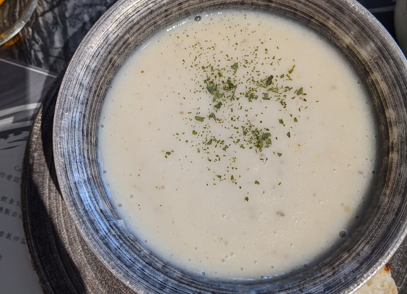 當然姍姍來遲的服務生經理只協助端了碗湯~