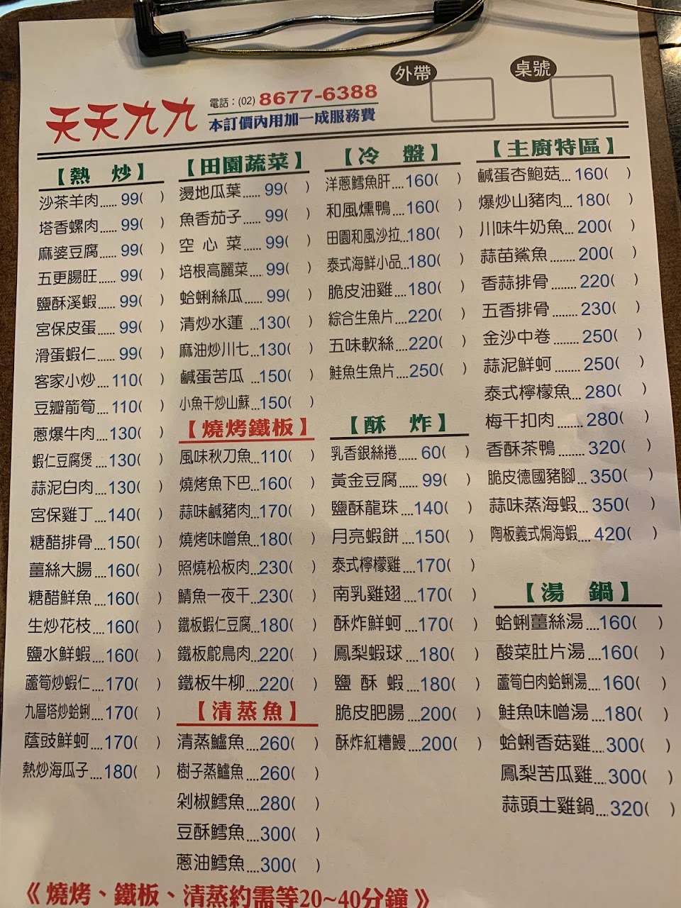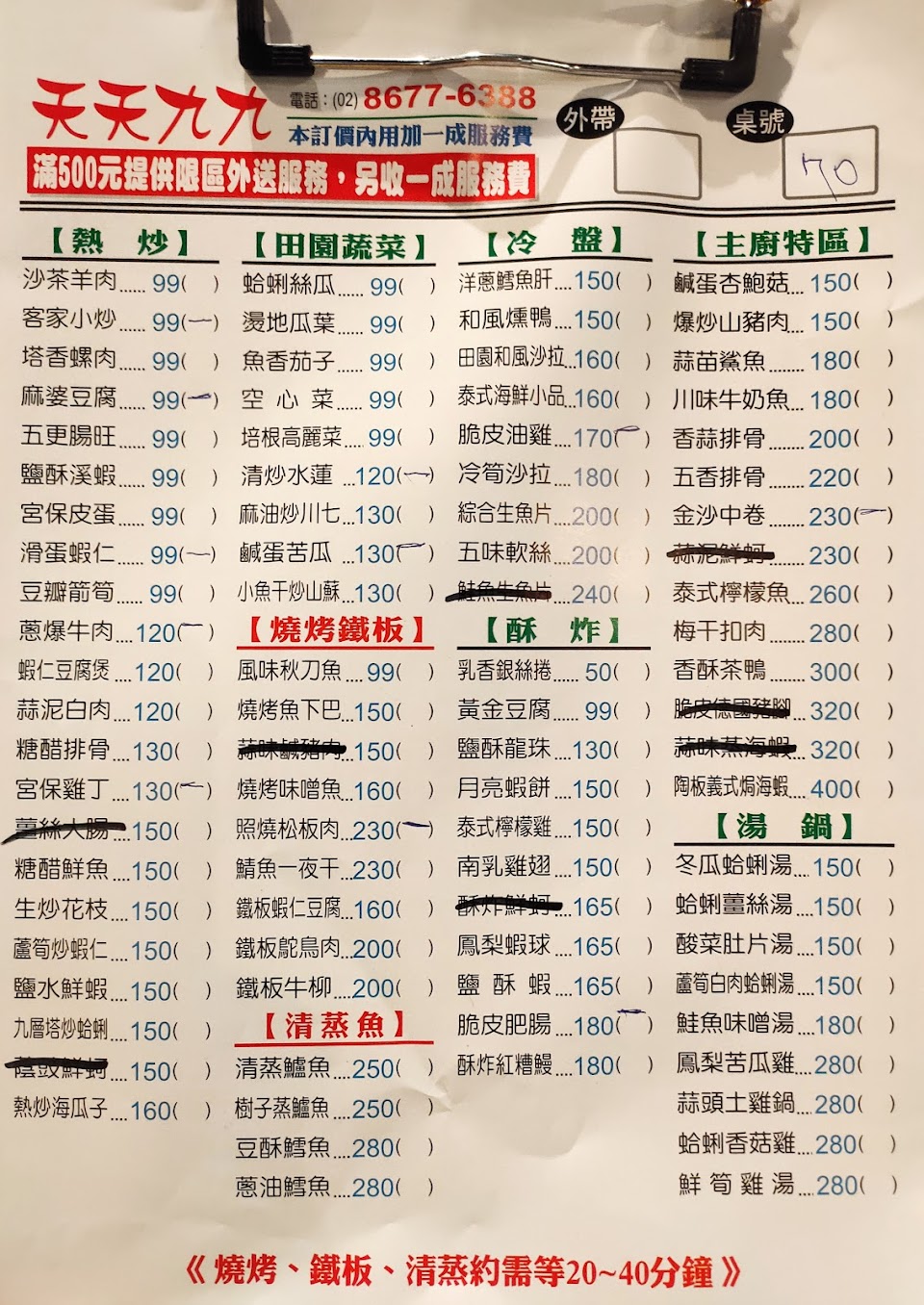 2024最新在地推薦餐廳的菜單_天天九九熱炒的菜單、圖片
