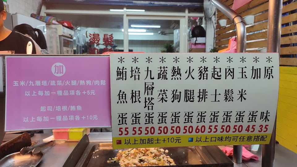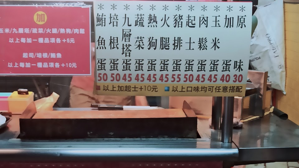 我說我要蔥抓餅加豬排加起司然後再加一個蛋肉鬆