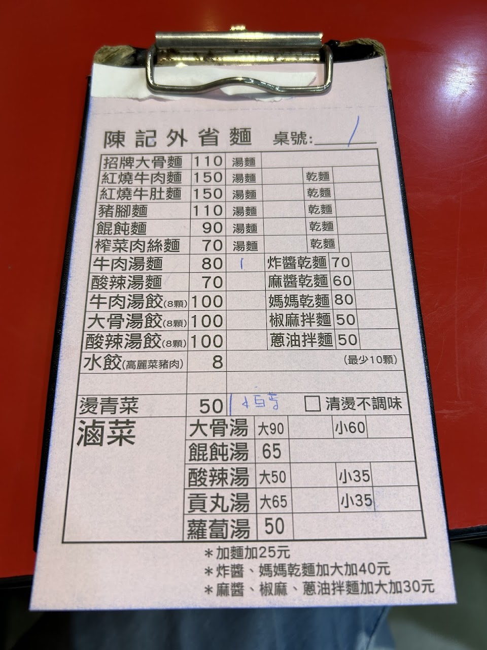 食記是我一種紀錄生活的方式,體現於當下的心情與味覺,是個非常主觀的感受:先說結論,令我驚訝的一家小吃店,其中大骨麵非常好吃,不過這次美中不足吃到豬毛。位於延吉街的陳記外省麵,在中午時段生意非常好,其中我這次點的大骨麵,令我非常驚豔,湯頭、大骨與蘿蔔融合一起,大骨肉份量十足,且味道濃郁香甜,麵條也還算順口,基本上作為一碗麵,湯頭與大骨肉的部分都非常有水準,雖然不是特別高級的餐廳,但是作為平民小吃來說,味道是難得的美味,下次還會再來。只不過最後看到湯裡飄著豬毛的部分,店員安慰著表示這是黑毛豬的部分,不知道該哭還是該笑。