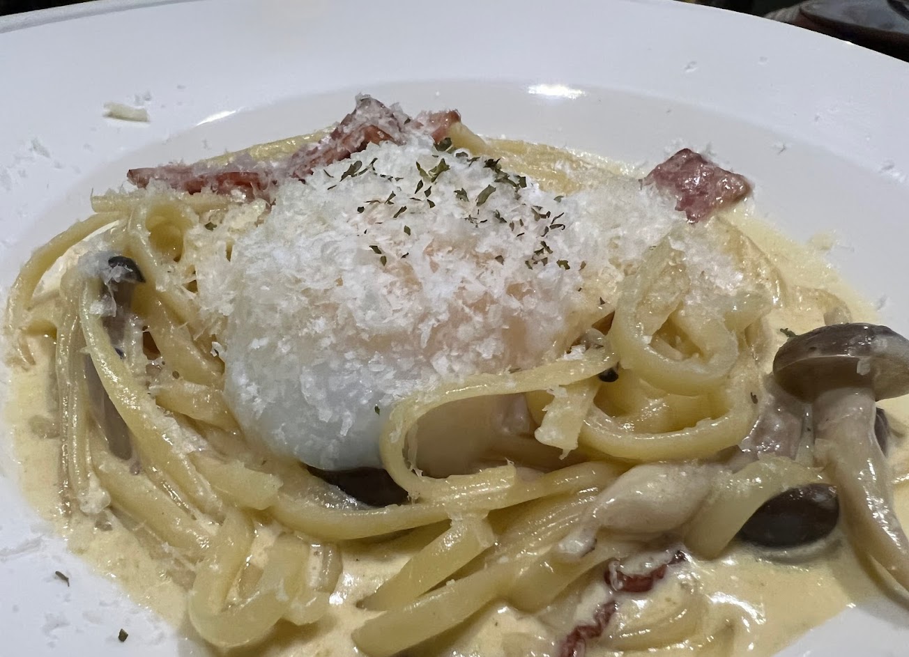 培根奶蛋麵還真的是白醬培根上面放個溫泉蛋….我還以為是Carbonara….