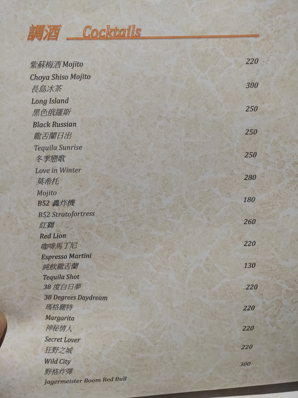 餐點非常有水準,一般吃到到的雞翅都很乾柴,但紅廚雞翅除了調味酸甜外,肉質仍保有鮮嫩多汁,今天也點了烤半雞,一樣讓人驚艷,最難處理的雞胸部分,仍然維持很高的水準,調酒類價格很親民,很物超所值!結果照片只照了調酒,其他顧吃忘記拍照了⋯⋯
