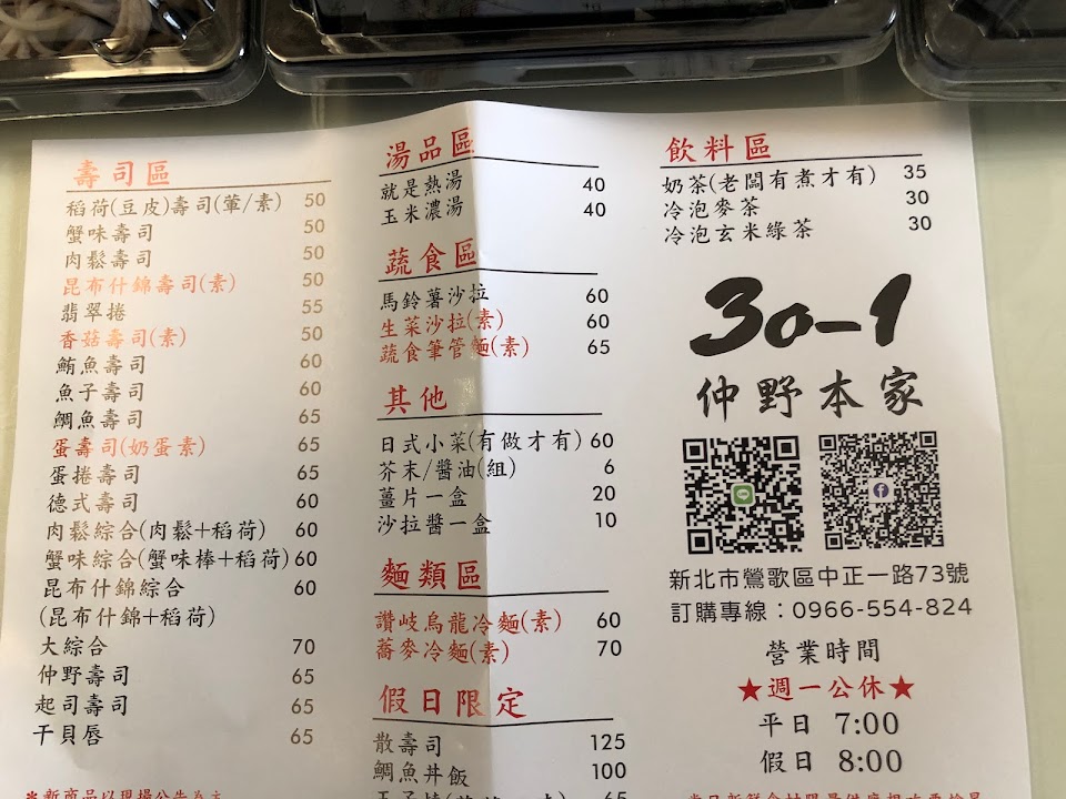 鶯歌居然有cp值這麼高的日式壽司外帶店 還有蕎麥麵跟輕沙拉 也有賣一些飲品 餐點高貴不貴 真的值得一吃再吃 賣完就休息了 想要口味齊全要早點去買
