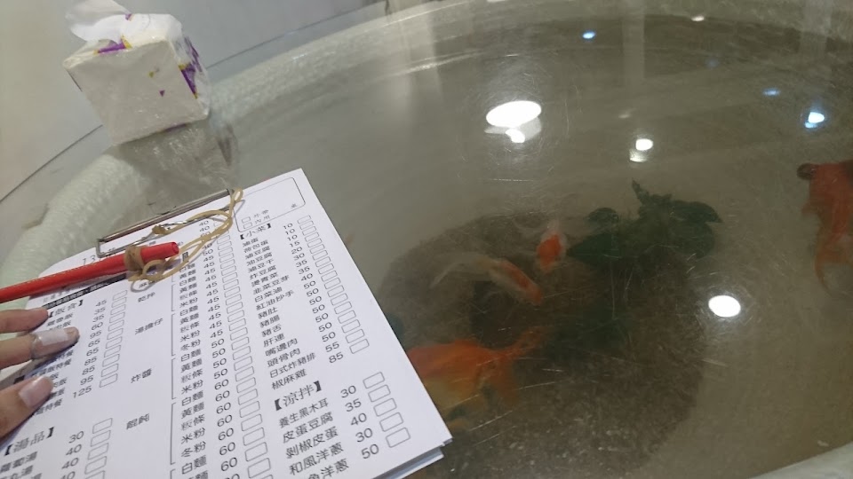 魚缸上擺放玻璃桌面,可以一邊用餐一邊賞魚,餐點好吃又親民,有機會再過去遊玩一定要再光顧