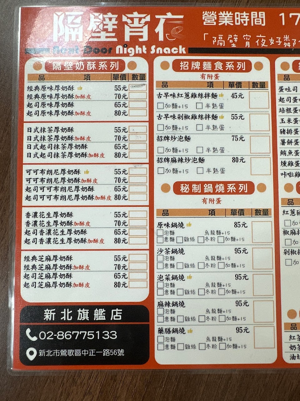 2024最新在地推薦餐廳的菜單_『隔壁宵夜』新北旗艦店的菜單、圖片