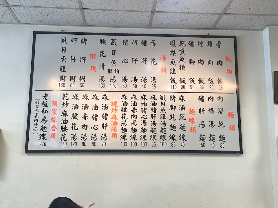 為了滷肉飯進的門,却沒有喫,我還得留着肚子喫別家呢!於是點了一碗麻油腰花湯,120元,要比豬心湯、豬肝湯貴上不少呢,甚至還有不加麻油的湯,清豬肝湯衹要40元。