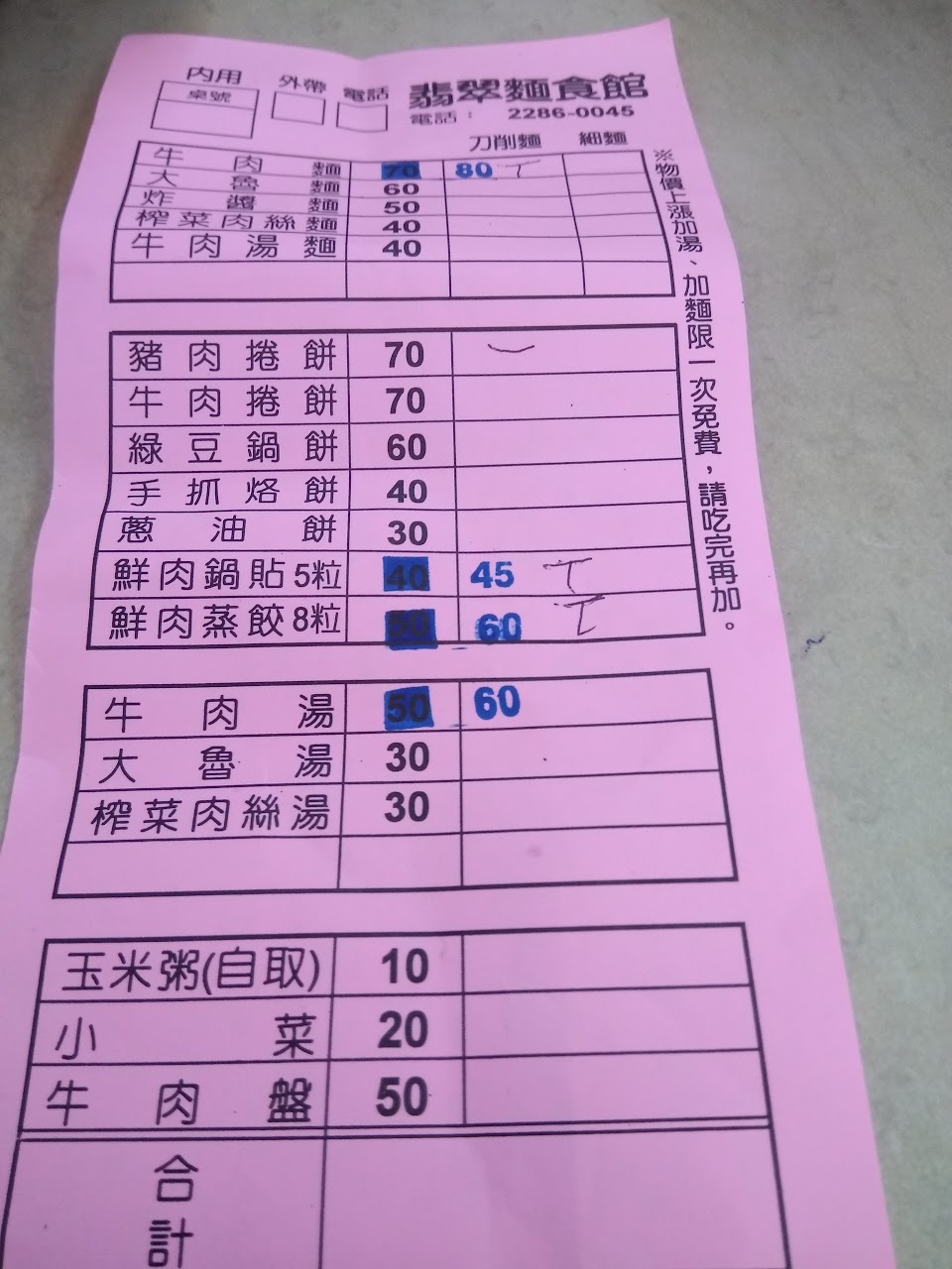捲餅七十 牛肉麵八十
