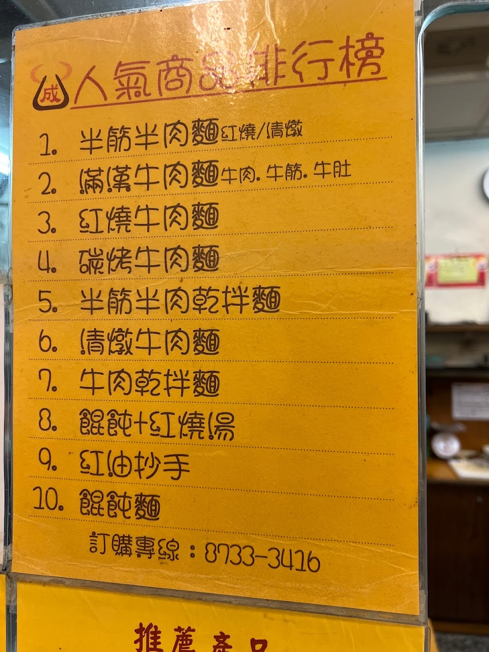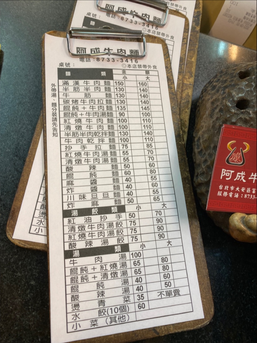 2024最新在地推薦餐廳的菜單_阿成牛肉麵的菜單、圖片
