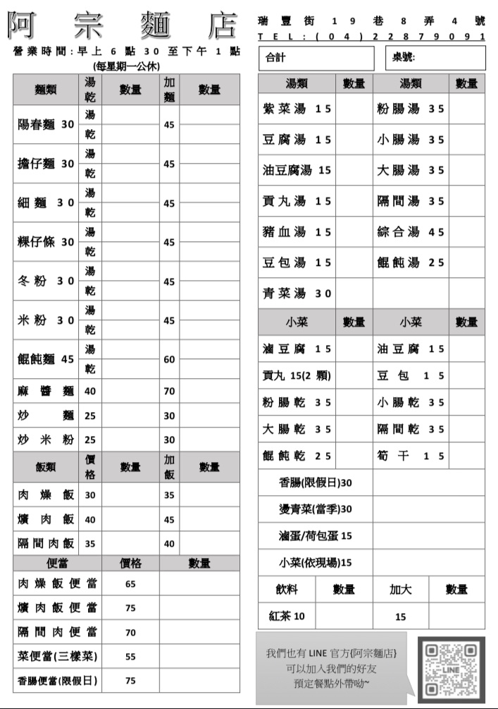麻醬麵35,類鹹水意麵,不會軟,但我下次會請煮硬一點,配菜是空心菜且量多,醬料是比較湯的那種,但香味還有,最後被我喝得乾乾淨淨。 豬血湯15這個份量真得很扯好像不用錢一樣,豬血脆也沒有任何異味,湯頭中規中矩,加胡椒跟醋更好喝。 50塊吃飽飽的神奇地方,不點麻醬麵的話還可以再便宜10塊,等於40吃飽。 附上店家完整菜單給大家參考。