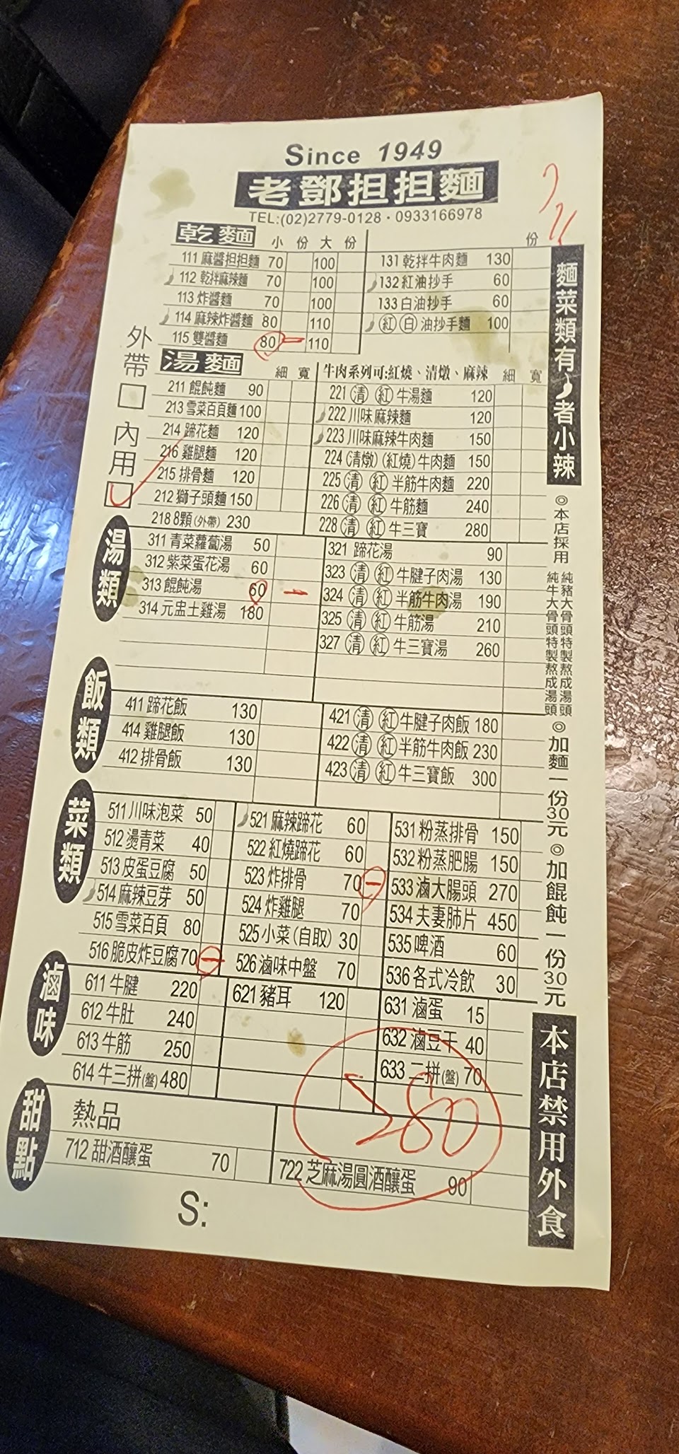 沒想到延吉街也有一家老鄧,炸醬麵是最接近原版的老鄧,但原版老鄧的炸醬麵是辣,而不是麻辣,原版老鄧的炸醬麵也更辣 因為是離峰時間去的,肥腸感覺放很久變硬了 四川泡菜還可以,但多一點花椒香味會更好 總之價格不像永康老鄧那麼誇張,和原版老鄧味道也接近 懷念當年的老鄧,會再光臨 餐點:3 服務:4 氣氛:4