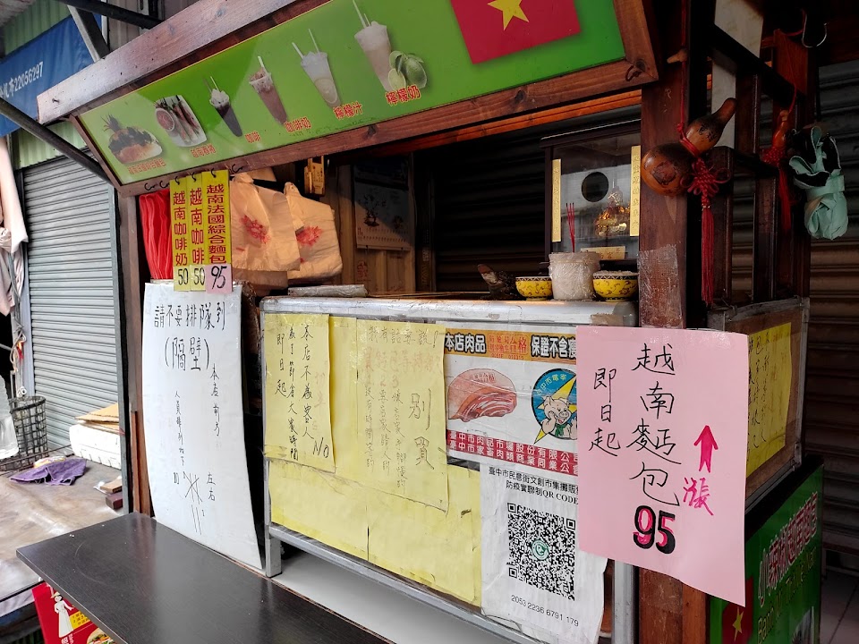2023年5月27日第二次購買 越南法國綜合麵包 一份95元,麵包塞滿各種自製的紅燒豬肉、火腿、醃蘿蔔、黃瓜條、豬肝醬、奶油、醬汁等,內餡塞的滿滿?外層麵包酥脆,口感有嚼勁,是我吃過覺得最好吃的法國麵包了?早上7點多就開始排隊的美食小吃,一般大約要等一至兩個小時才會拿到麵包?每週二公休。