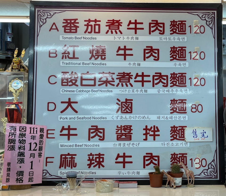 紅燒牛肉麵已經賣完啦!下次也想去吃看看