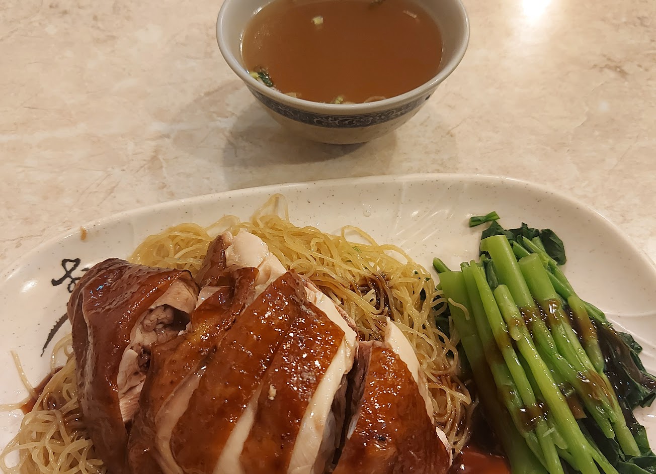 2021/10 還蠻到地的港式燒臘 包括用餐環境都可以感受到港式風格 餐廳小而美、沒有一般燒臘店的油膩感 整體環境保持的很乾淨 飯/麵/粥/飲料都有 用餐時段外頭排滿買飯盒的隊伍 內用區翻桌也快速 二次來訪都沒有需要到等候 辣醬不是常見多醬油辣椒 倒是有點沙茶口味的辣醬 微辣微甜的口感、配飯倒是蠻好吃的 熱茶冷飲自由取用 食量大點的、可請老闆加飯 油雞/燒鴨/叉燒都不錯 鴨腿要碰運氣連續二次都賣完 可以來試試