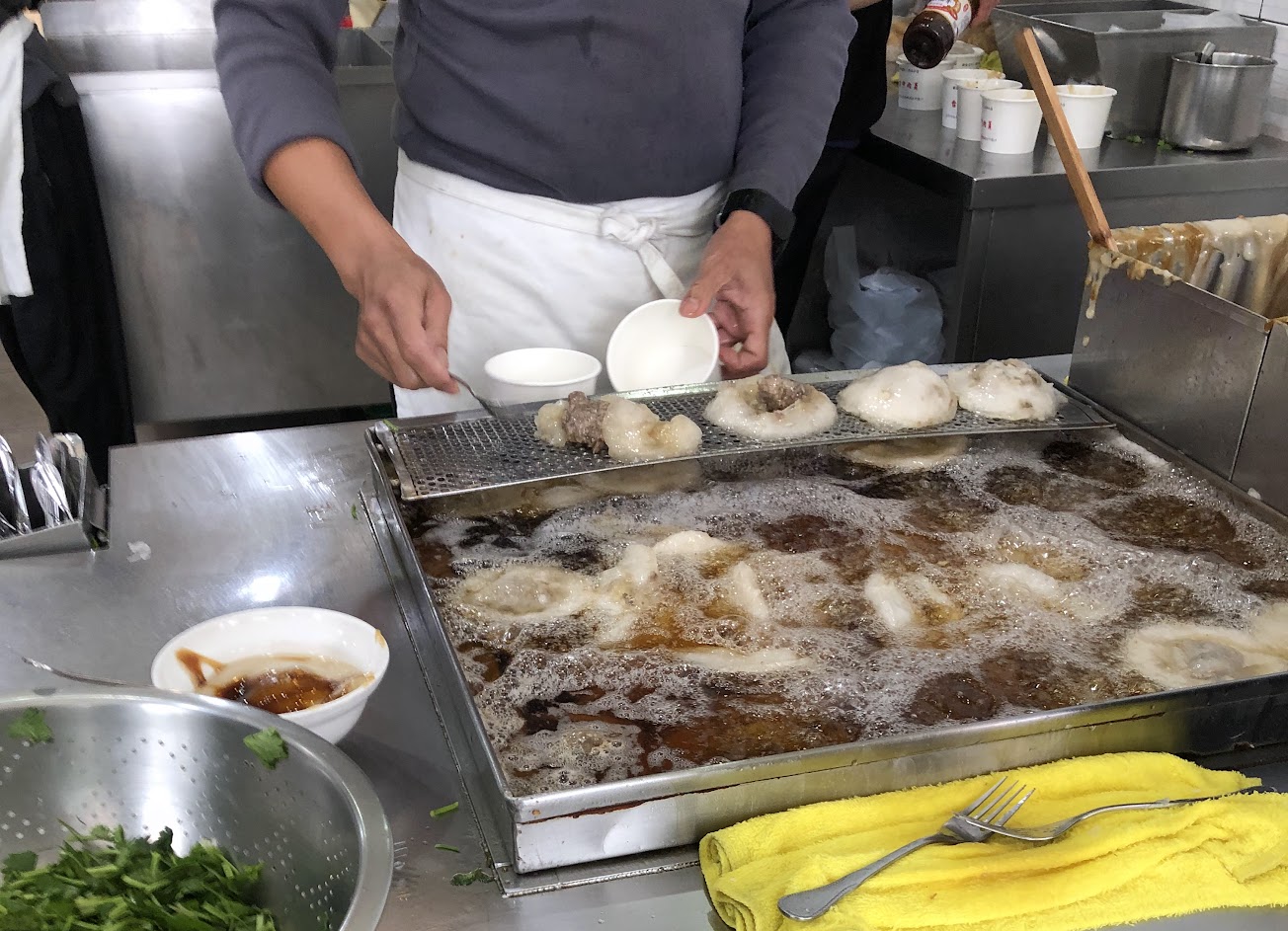 炸肉圓表皮Q肉餡彈牙,預設的調味沒什麼味道,記得一定要加桌上白白濃稠的蒜蓉醬,湯還算可以但沒有特別驚艷的地方,整體而言是適合在地人光顧但遠道而來特別前往會有點失望的店