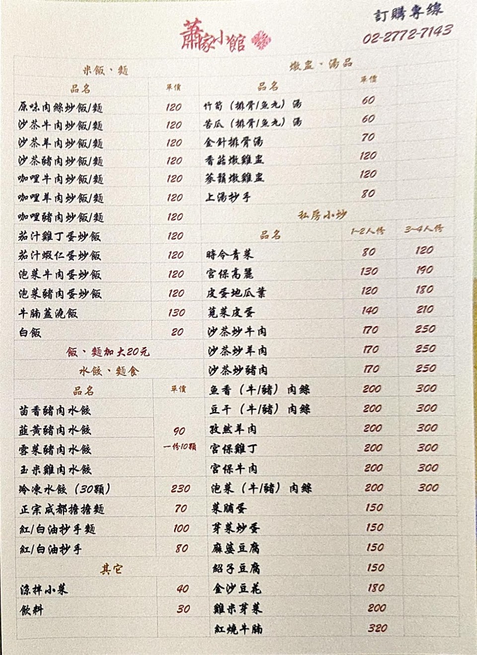 2024最新在地推薦餐廳的菜單_蕭家小館的菜單、圖片