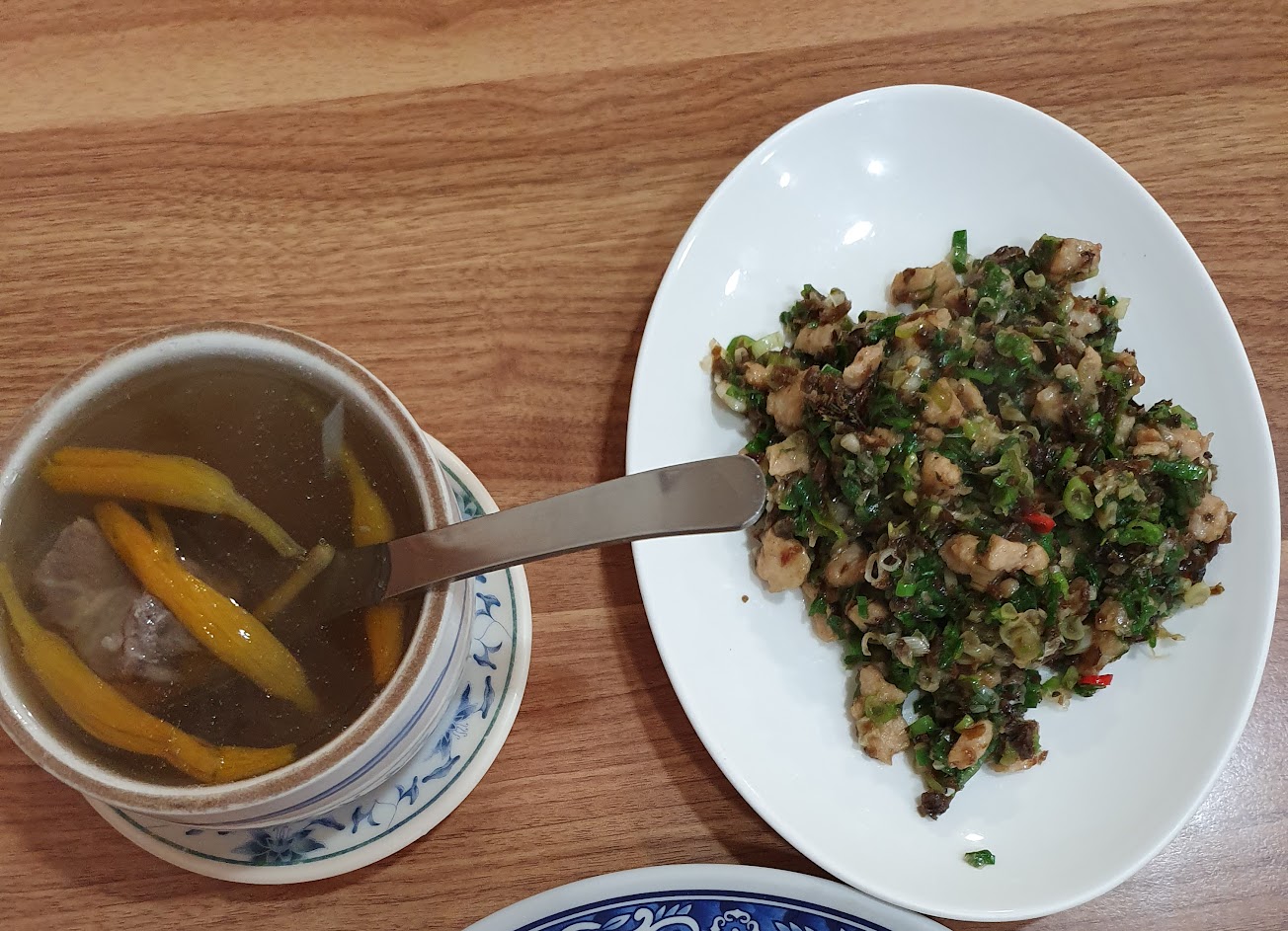 味道挺喜歡的 很家常的感覺 炒飯真好吃 不過份量可能太少 青菜也很新鮮清脆 筍子湯也是