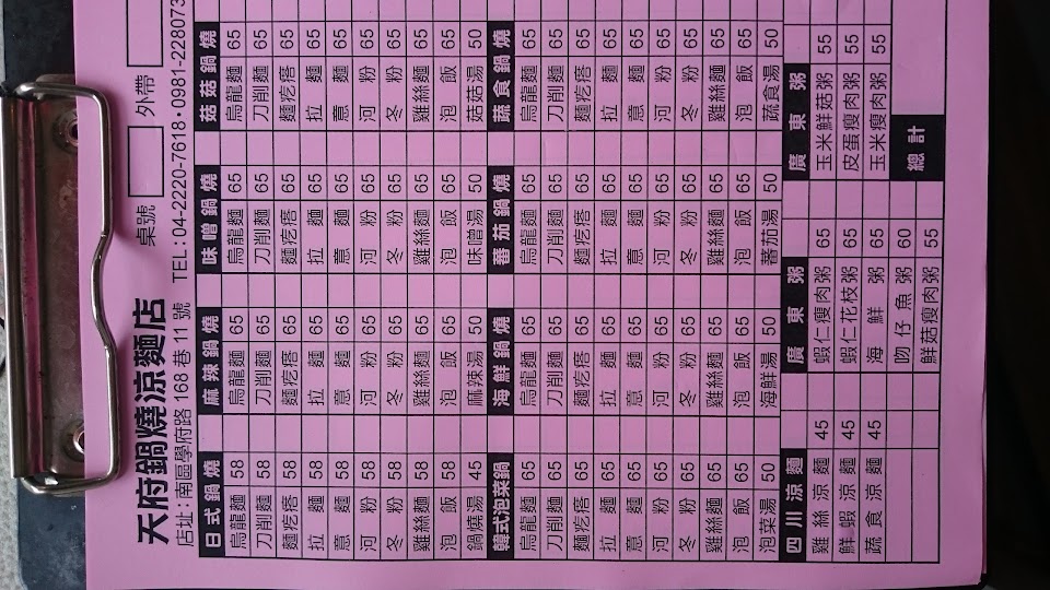 2024最新在地推薦餐廳的菜單_天府鍋燒涼麵店的菜單、圖片