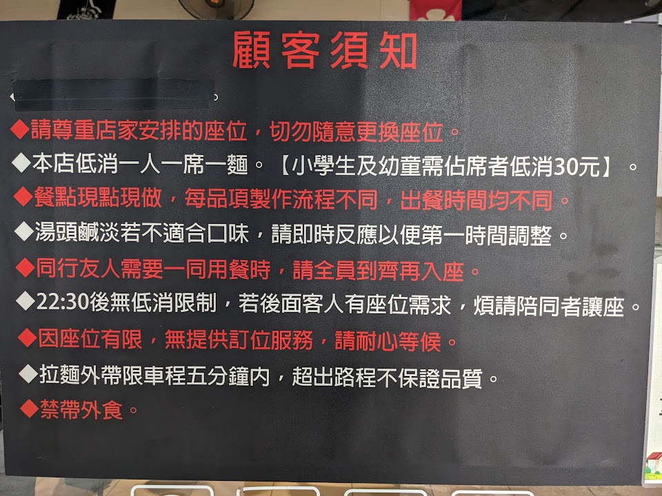 會持續支持其他分店(麵本初、秋鳴、吞山郎、雞厲軒),但不會再到本店..唉。