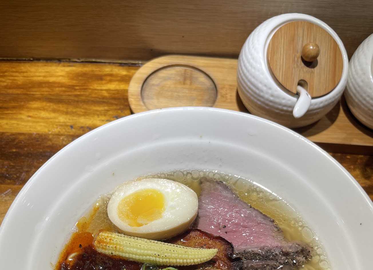 溏心蛋很棒。麵條偏硬。湯頭鹹但是不是味道濃厚的鹹,更像是單純的鹹,喝不太到湯頭的味道。叉燒不錯吃,很大片而且入口即化。