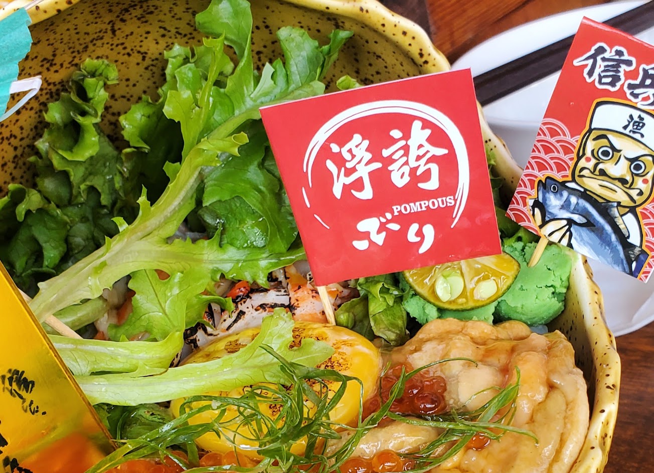 第一次吃信兵衛,給人的感覺就是走浮誇派的,就連餐點也是超浮誇,握壽司飯很大陀很飽滿,個人覺得份量可以,生食都算新鮮,熟食丼飯味道也是不錯,有打一顆生蛋黃,攪拌起來特別好吃,現在打卡送旗魚握握兩貫。