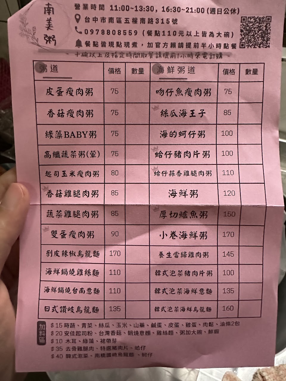 2024最新在地推薦餐廳的菜單_南美粥的菜單、圖片