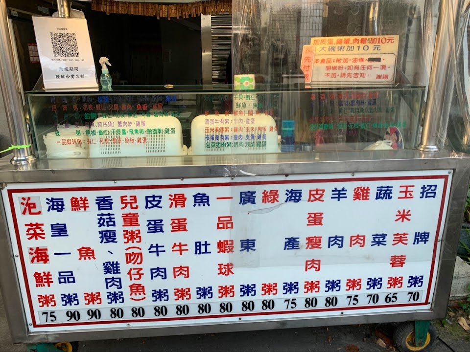 攤位上可以看到各種粥有放什麼食材,