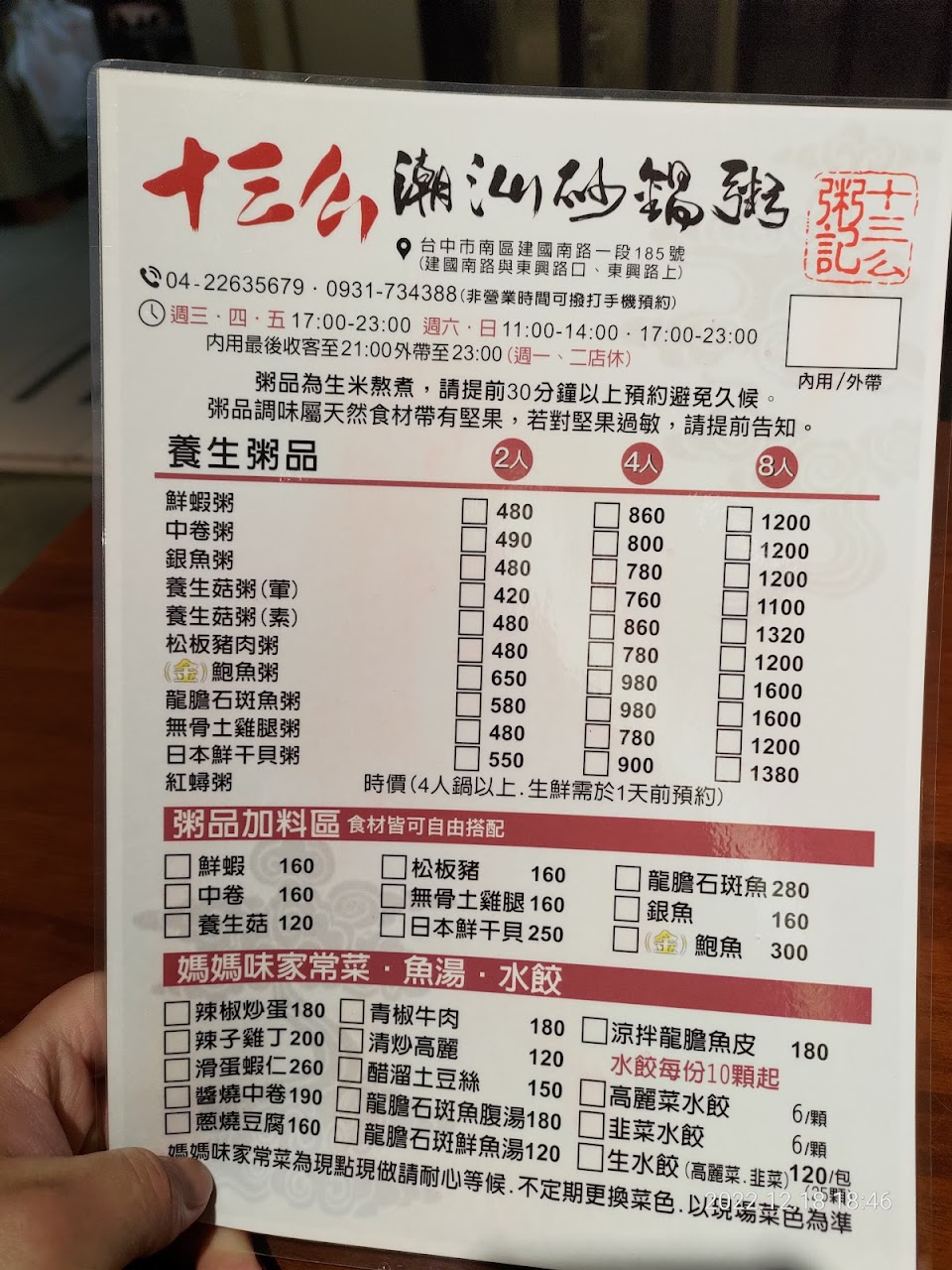2024最新在地推薦餐廳的菜單_十三么潮汕砂鍋粥台中中山店的菜單、圖片