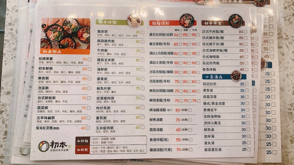 2024最新在地推薦餐廳的菜單_初本粥舖(美村南店)的菜單、圖片
