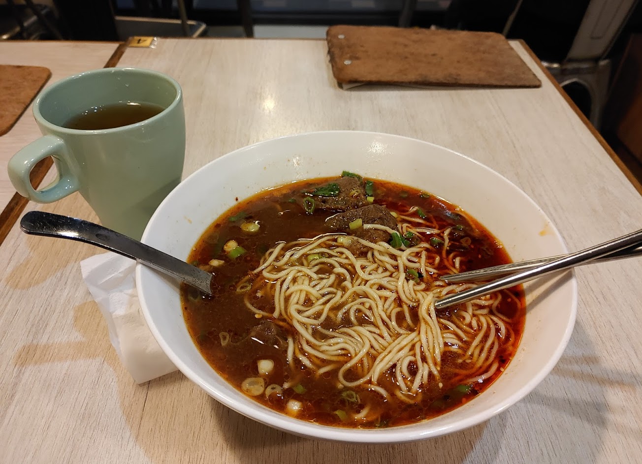 性價比頗貴低,不便宜也沒關係,但口味也沒太厲害。特別是水餃一顆7元,不知道為什麼敢賣這個價錢,只有皮算紮實這個優點。牛肉麵一碗只有四大塊肉,優點是滷的很嫩、口感很好,但湯頭大概是濃一點的三商巧福。然後年輕員工臉臭的跟什麼一樣,不想工作賺錢就回家。