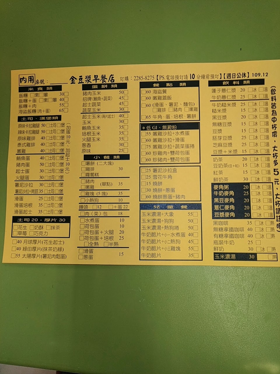 飲料種類多,蛋餅很特別,原味蛋餅還有附菜呢!老闆人超好的,打電話去點熱的飲料想要外帶,老闆等到我要拿早餐的時候才幫我裝飲料真的很貼心!