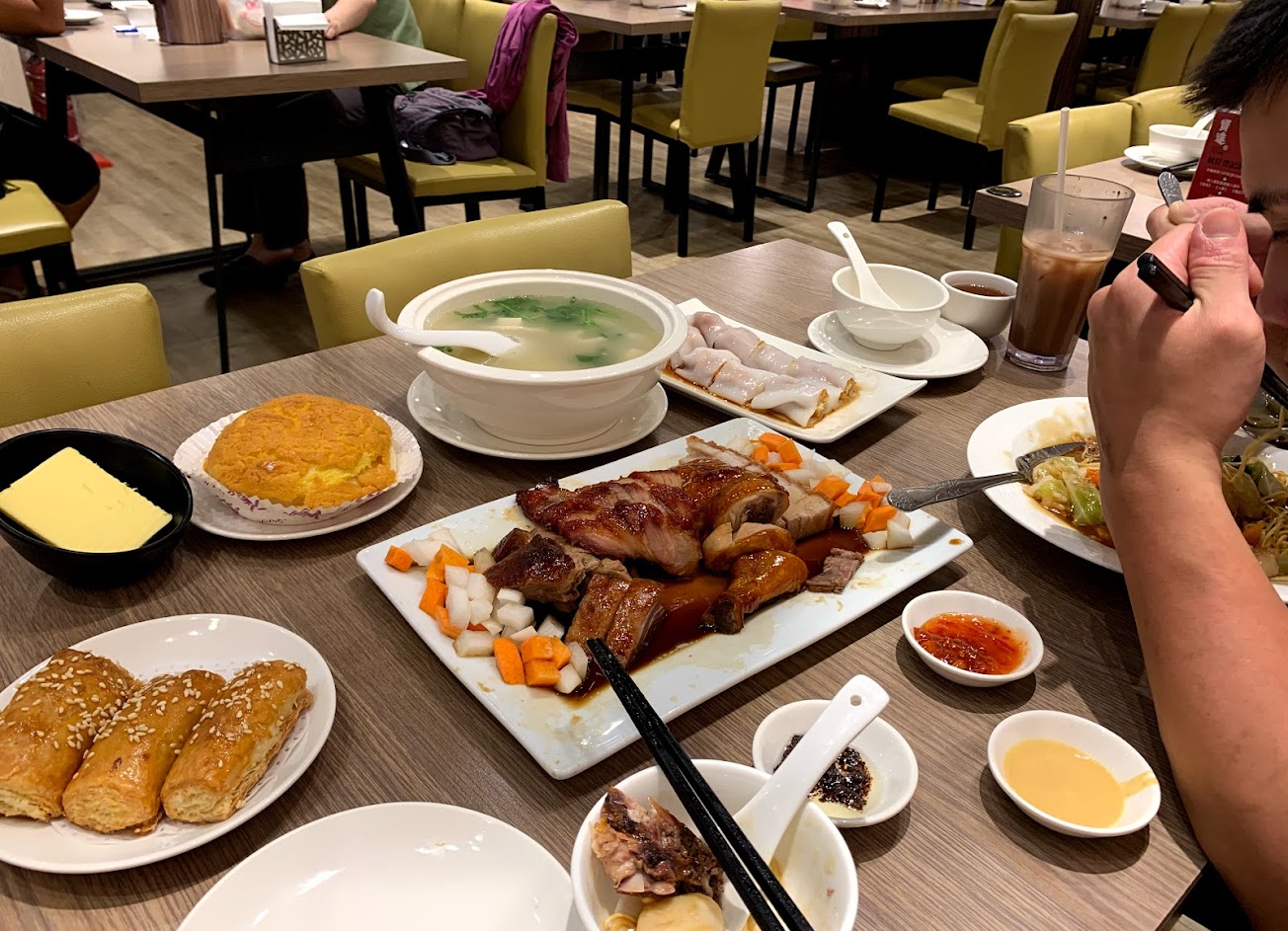 燒鴨、廣東炒飯、冰火菠蘿油、港式蘿蔔糕、絲襪奶茶都很推,生意超好