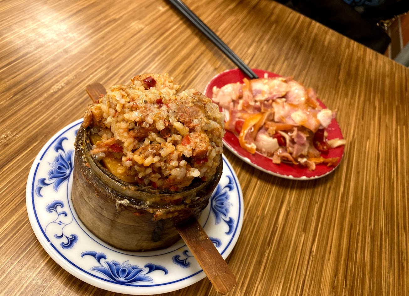 肥腸配上糯米,加上是用蒸的,有著很神奇的口感,非常容易秒殺。吃到底部發現還使用地瓜(南瓜?)墊底,這道菜的中心思想就是一整個軟嫩!