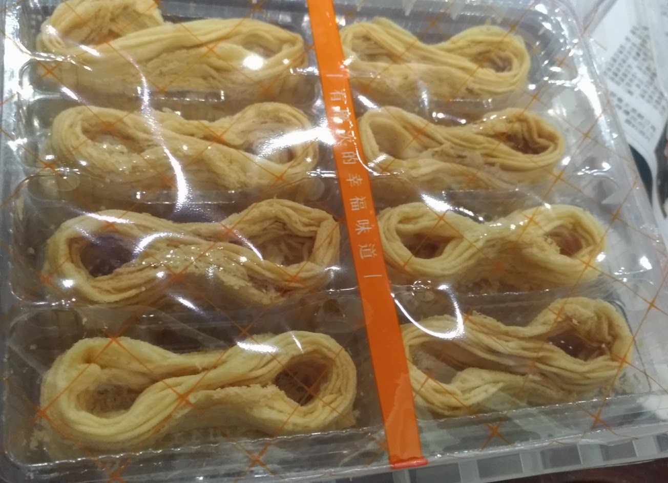 最近團購夯物,應該是蛋捲層次不多層,所以吃起來不夠酥脆,真的就是蛋捲壓扁扭轉成8結,有吃過其他家更好吃的8結蛋捲,以一盒價格數量來說cp值不高,到店自取就算買的量多也不會提供紙箱方便拿取,還是需要自己分次的搬上車