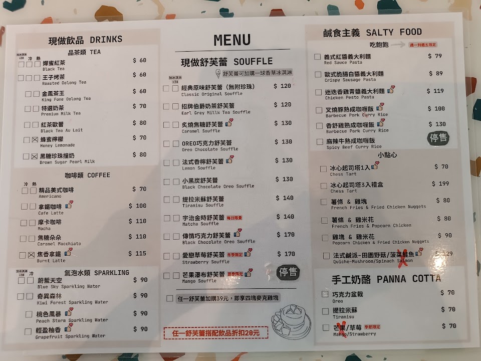 舒芙蕾好好吃,檸檬的吃起來別有一番風味,還有桌遊可以玩,很適合帶小孩來。