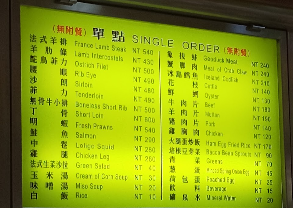 店內看板上價錢標示的一目了然且沒有低消