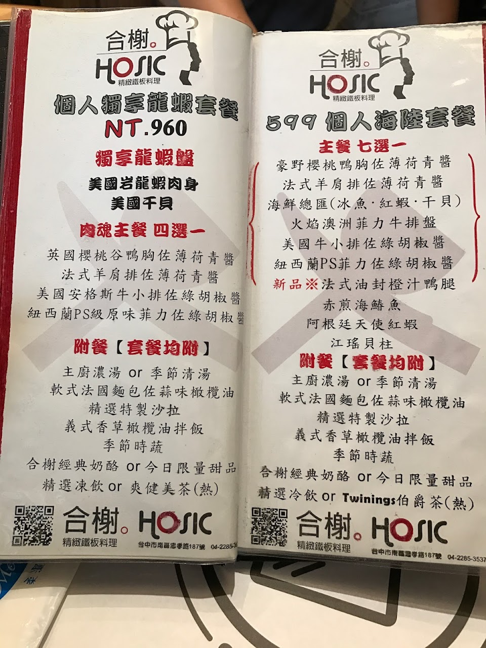2024最新在地推薦餐廳的菜單_合榭HOSIC精緻鐵板料理的菜單、圖片