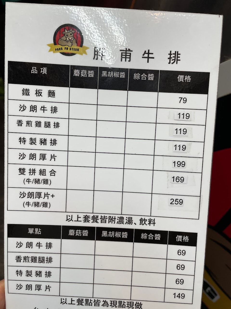 我給很高的評價! 因為牛排的蘑菇和黑胡椒醬汁是自己做的,好吃且香味自然。 而鐵板麵醬汁也是自己做的,超級搭鐵板麵,幾乎是我吃過最好吃的鐵板麵了! 玉米濃湯也是自己做,這家店厲害的地方就是都自己來,不會像夜市牛排般每家都一樣…