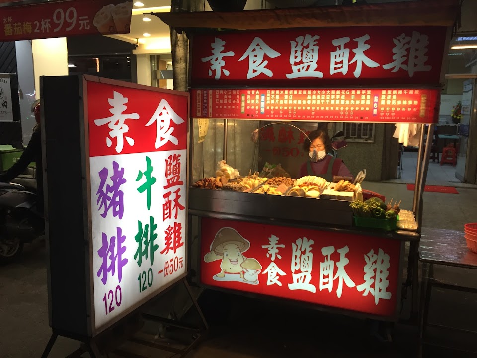 很少有機會看到素食夜市牛排!很興奮的買了雞排、炸甜不辣、炸素蚵仔。素雞排吃起來很好吃,煎蛋超好吃!