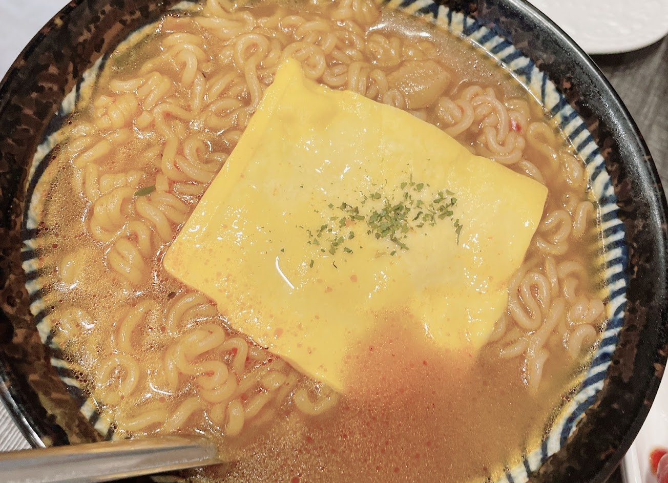 辛拉麵+起司 120元,很純的辛拉麵+起司?,好吃,但會覺得價格太貴了⋯畢竟什麼配料都沒有