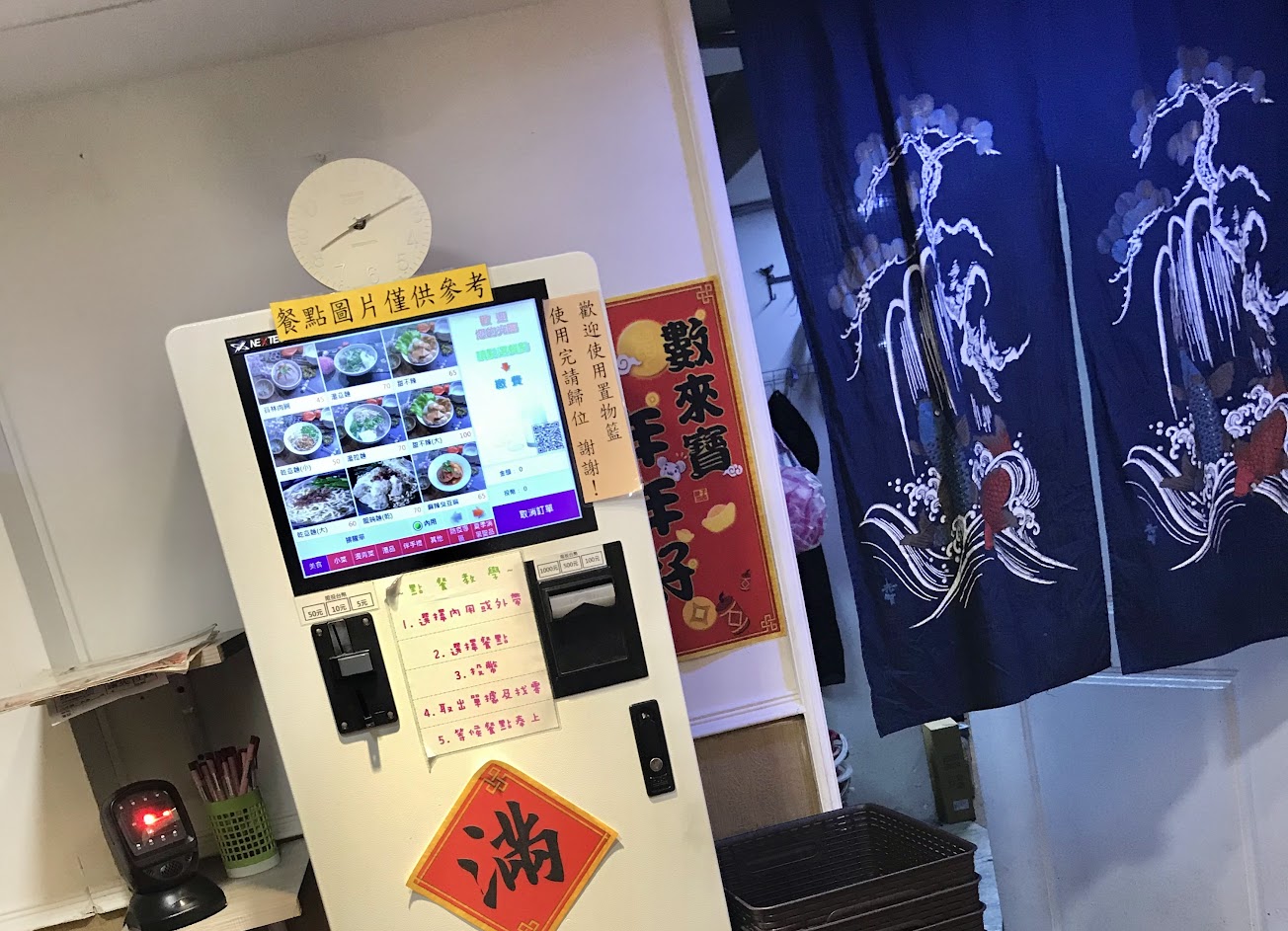 重新裝修後新增地下室用餐區以及貼心置物籃,吃飯前內用先來點餐機器付款。