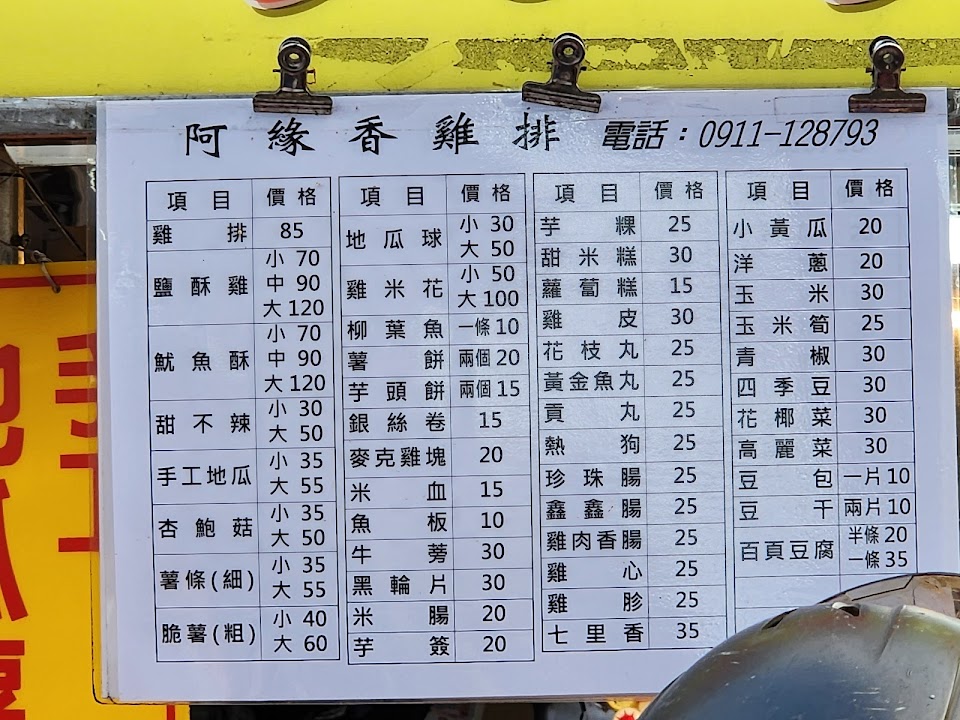 2024最新在地推薦餐廳的菜單_阿緣鹽酥雞 香雞排的菜單、圖片